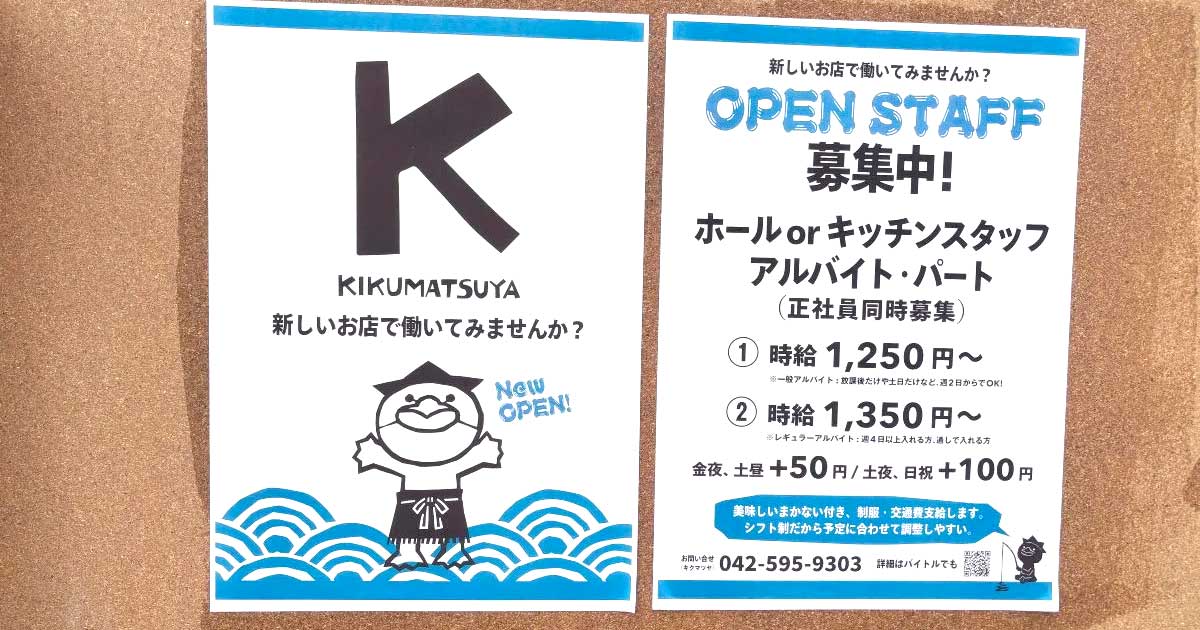 【開店】菊松屋の新店!?立川駅北口近くの開業準備中の店舗に「キクマツヤ」の名前と河童のマークがついてる。11月末オープン予定みたい