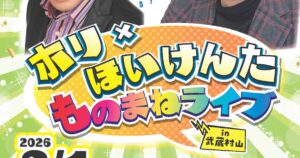 2026年3月1日(日)に武蔵村山市民会館で、ものまね芸人・ホリとほいけんたによる「ものまねライブ」を開催します。