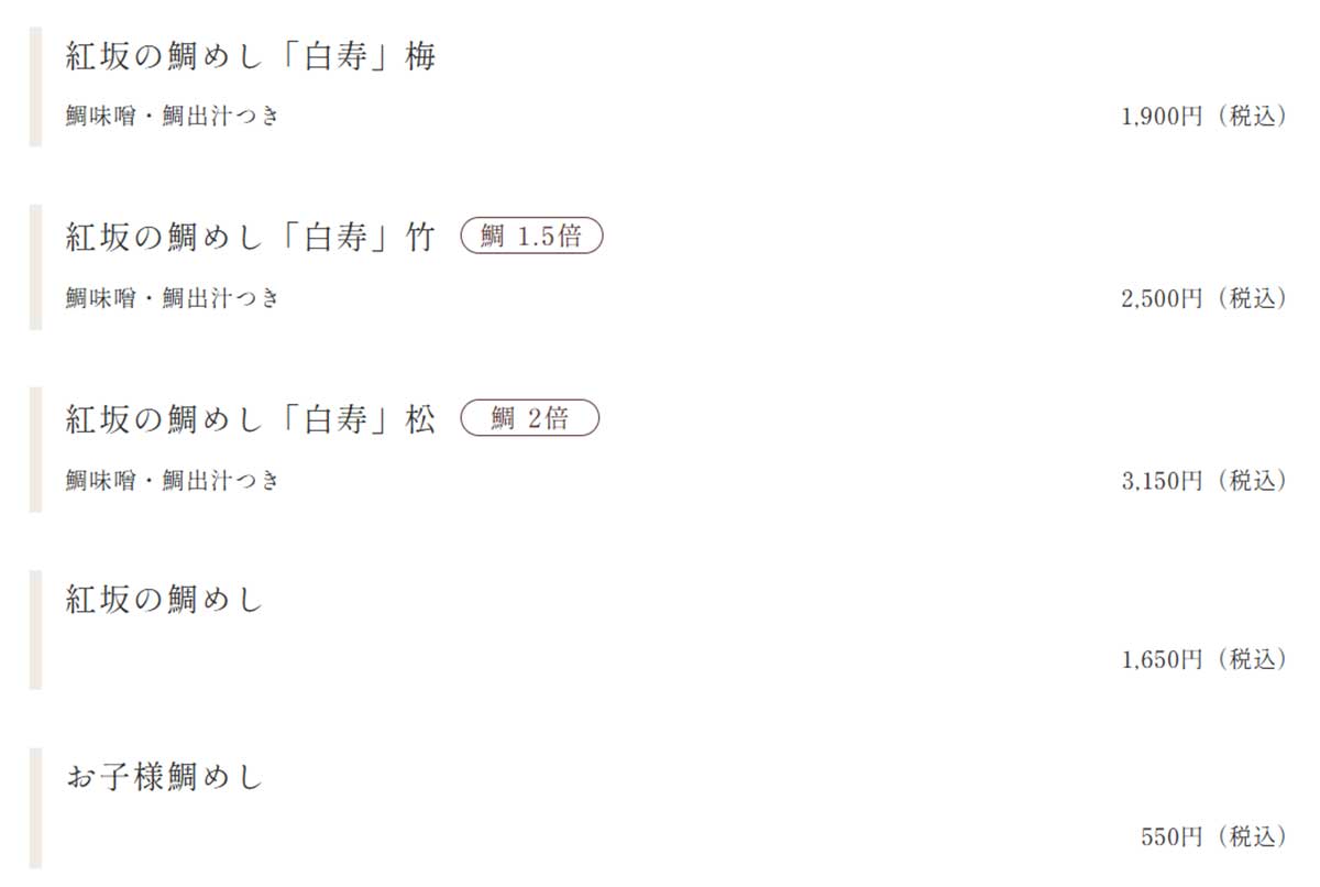 アイキャッチ引用元:『鯛めし紅坂(あかさか)』公式サイト(以下画像全て同ソースより引用)
