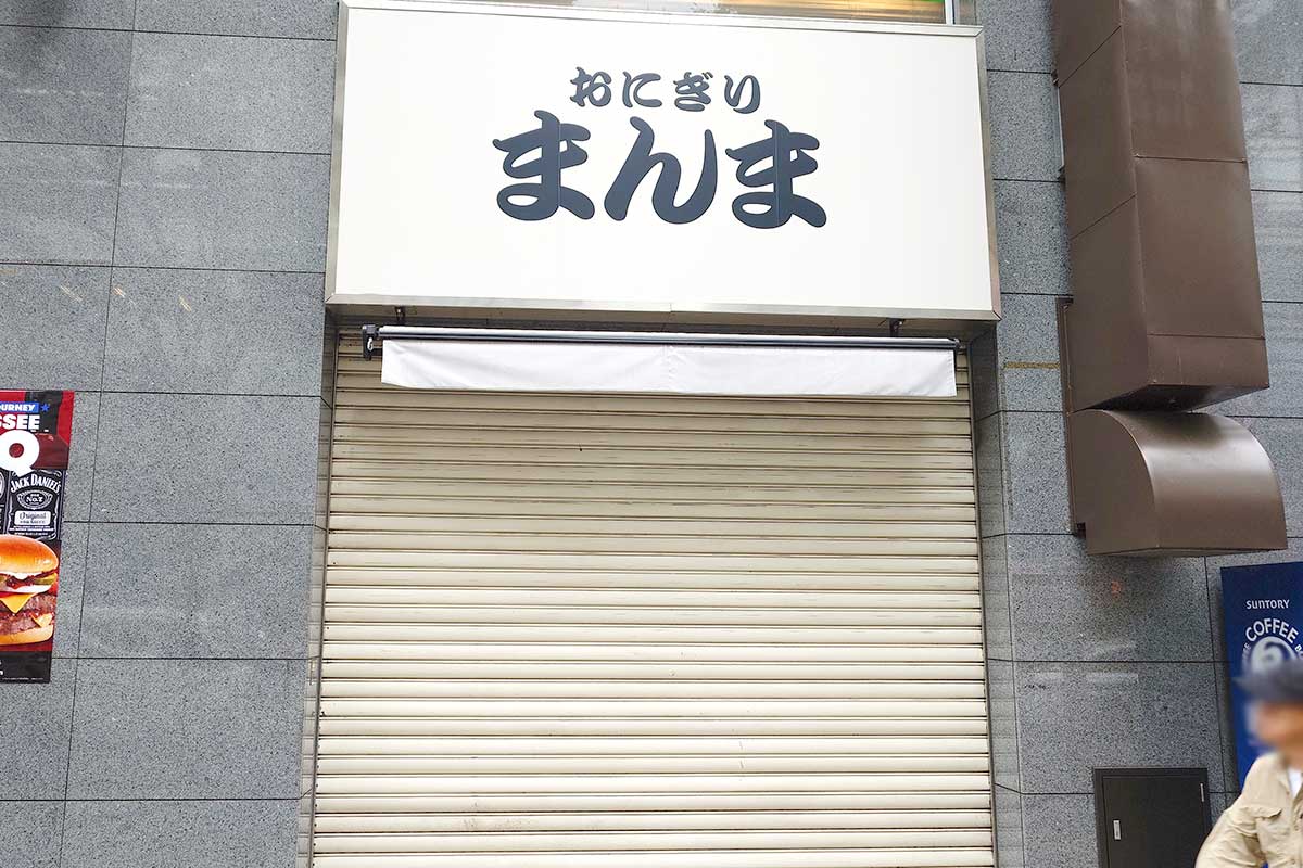 立川駅北口・フロム中武1Fのテイクアウト専門おにぎり店『おにぎりまんま 立川テイクアウト店』のシャッターが下りています。