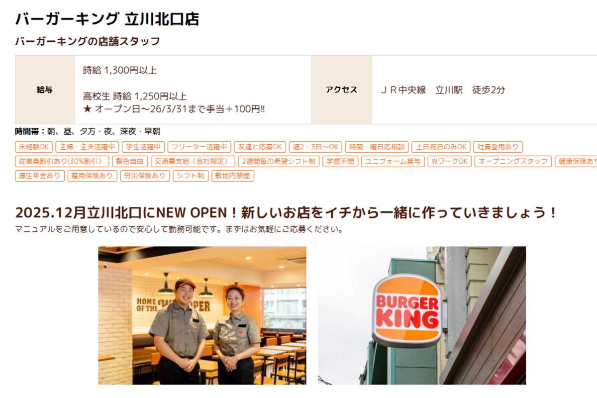 2025年12月、立川駅北口に『バーガーキング 立川北口店』がオープンするようです。