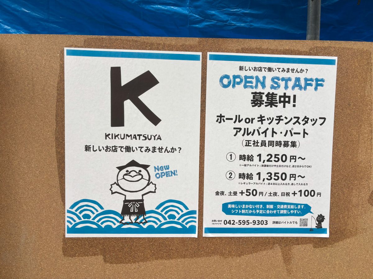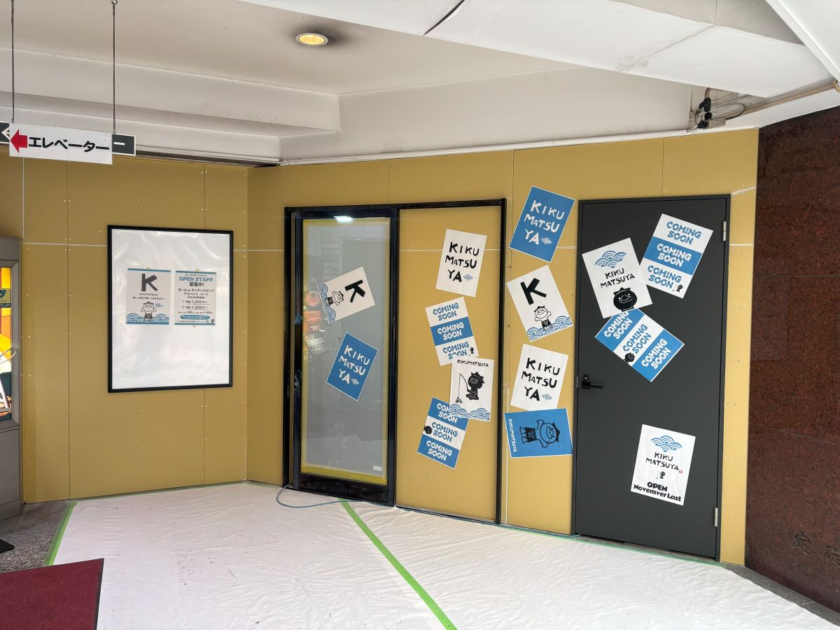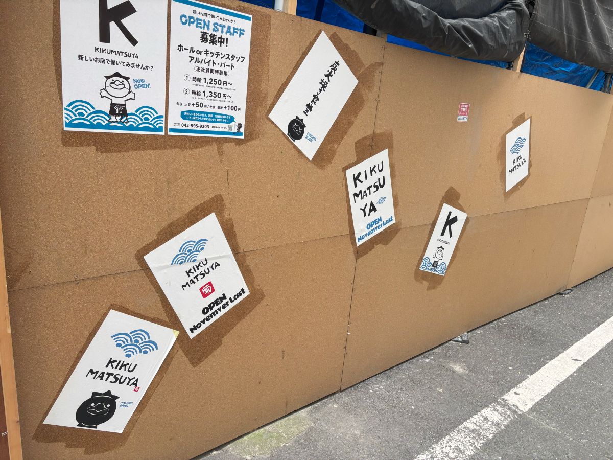 【開店】菊松屋の新店!?立川駅北口近くの開業準備中の店舗に「キクマツヤ」の名前と河童のマークがついてる。11月末オープン予定みたい