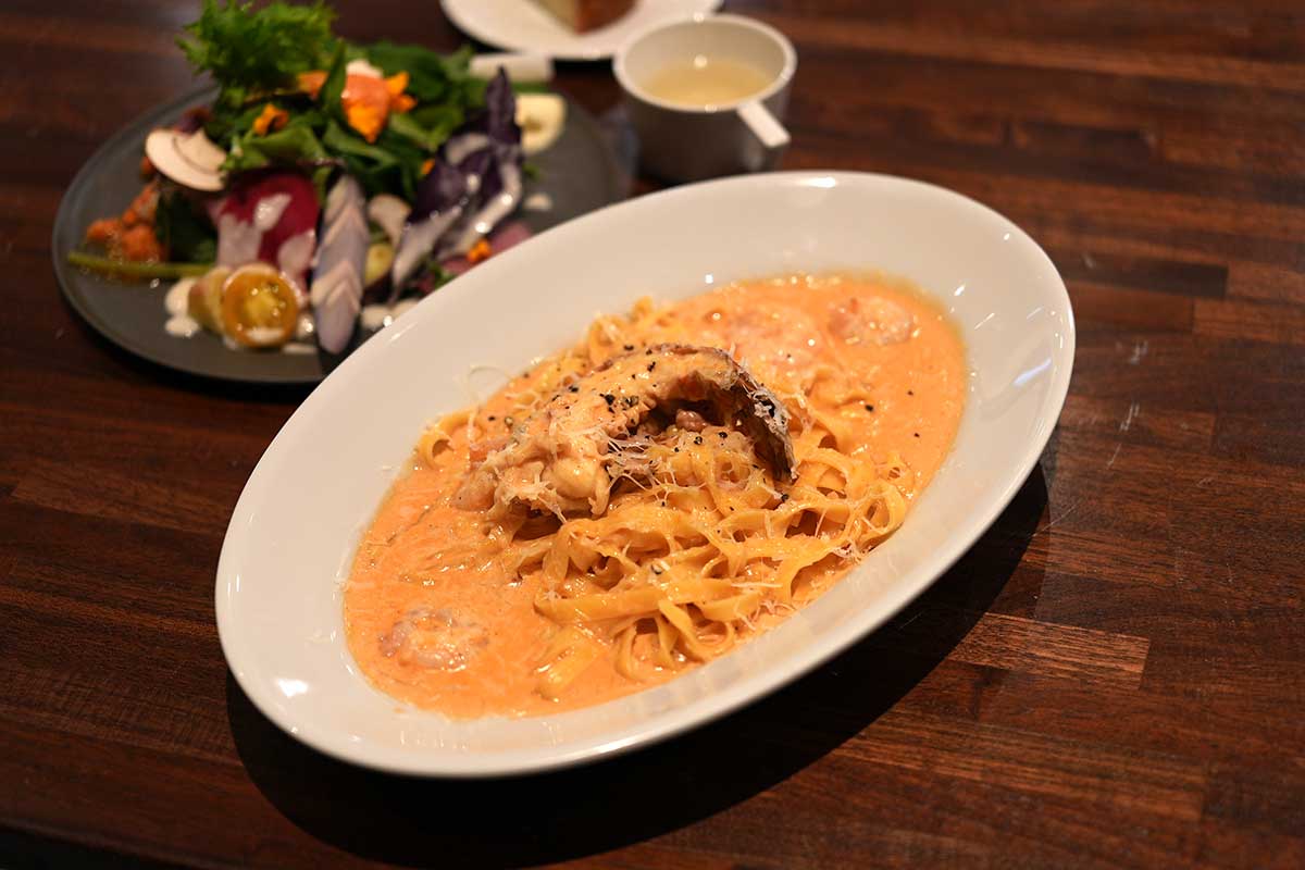 パスタには上にゴロっとメインが乗っていて、まるでワンプレートのような感じ。