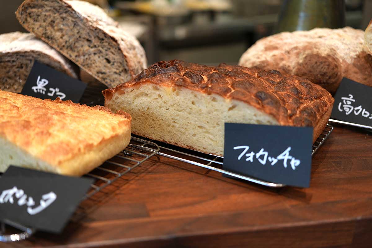 フォカッチャや黒ゴマ、ポレンタ(トウモロコシの粉を使ったパン)など、パンの種類もさまざま。