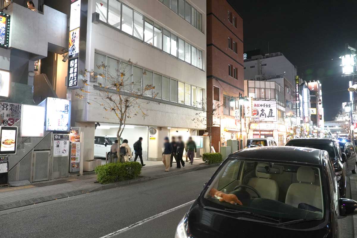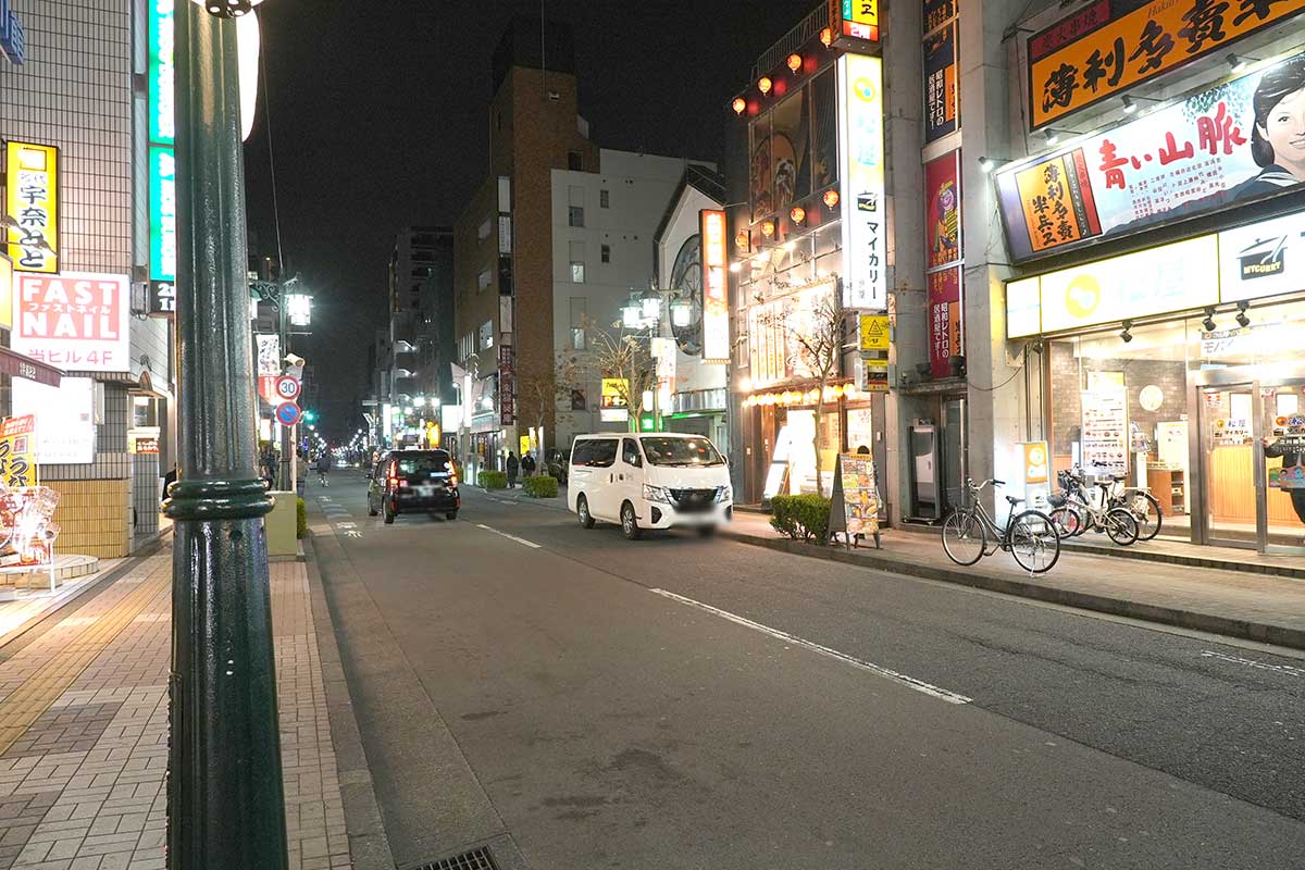 すずらん通りぞい、隣には『松屋 立川錦町店』、向かい側には『名代 宇奈とと立川店』などがあります。