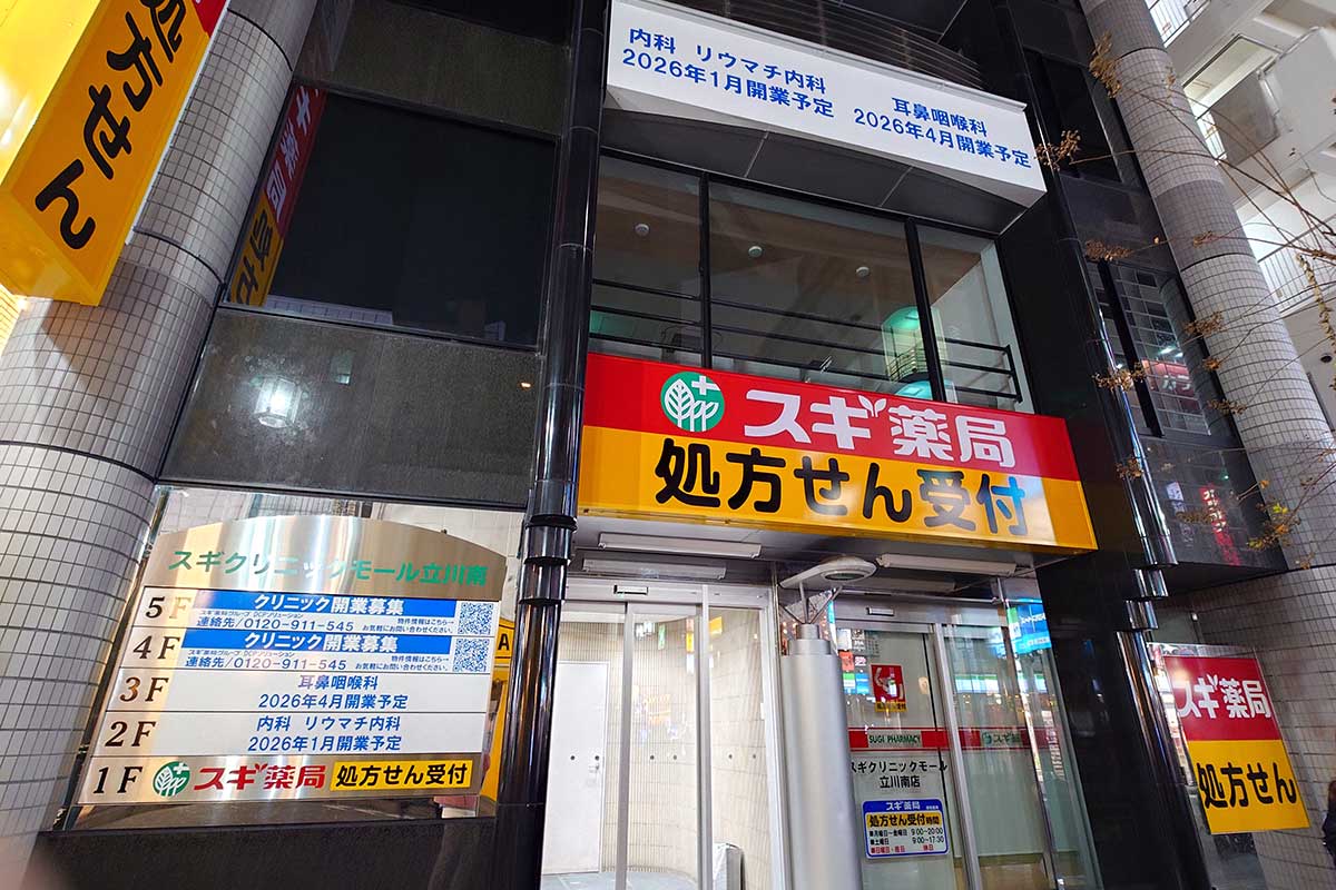 ビルの名称は『スギクリニックモール立川南』。いわゆるドラッグストアとは異なる施設になるようです。