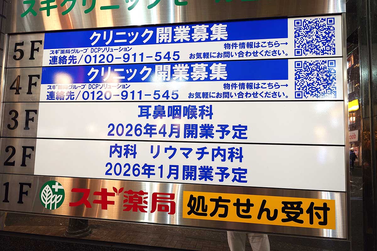 【開店】上から下までクリニック。立川駅南口・すずらん通りぞいのスギ薬局グループのビルに内科・リウマチ内科と耳鼻咽喉科のクリニックができるみたい