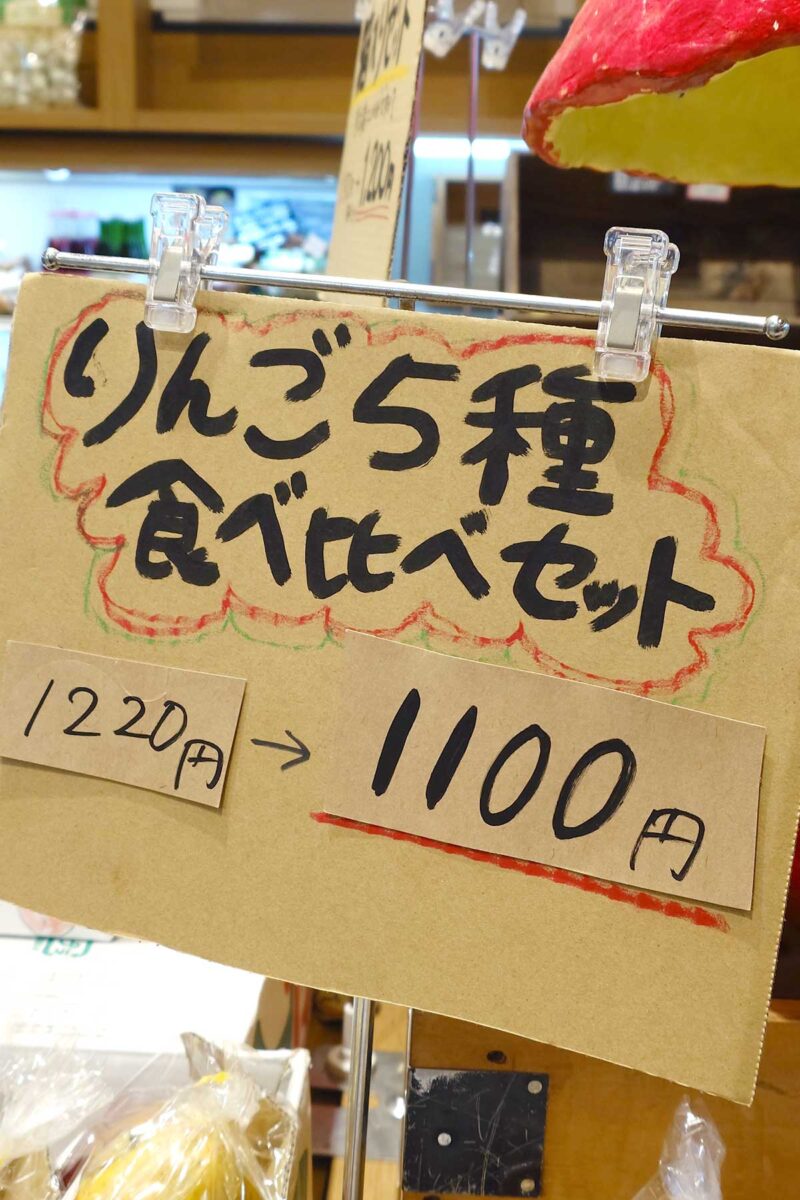 店内では「りんご5種食べ比べセット」がお安くなっていました↓