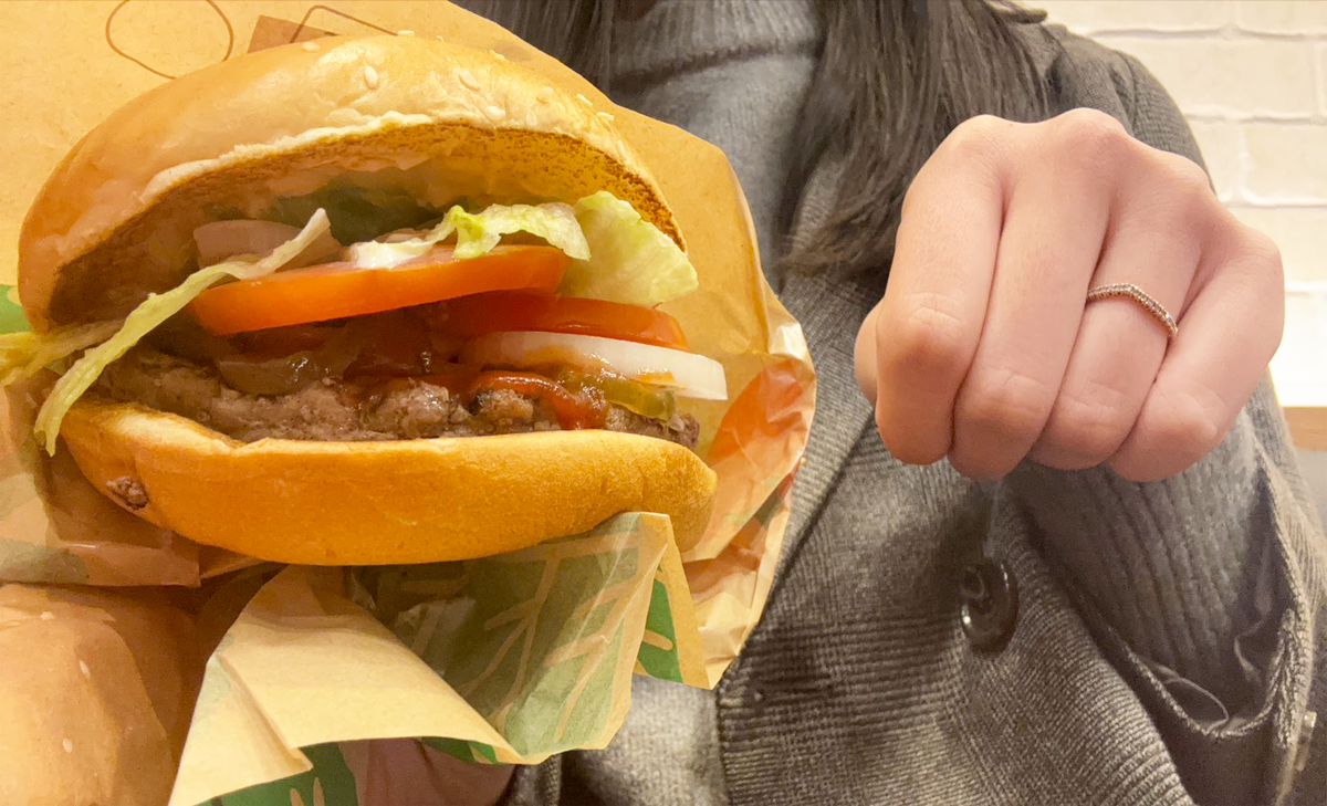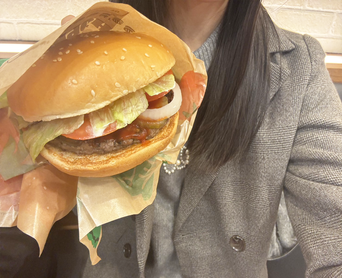 ビーフパティが肉厚でジューシー、香ばしい匂いから伝わってくるTHE肉肉肉……。