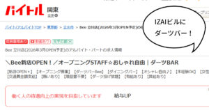【開店】ダーツバーどんどん増える!立川駅南口・いろは通り沿いのIZAIビル2階にダイニングダーツバー『Bee 立川店』が3月オープンするみたい