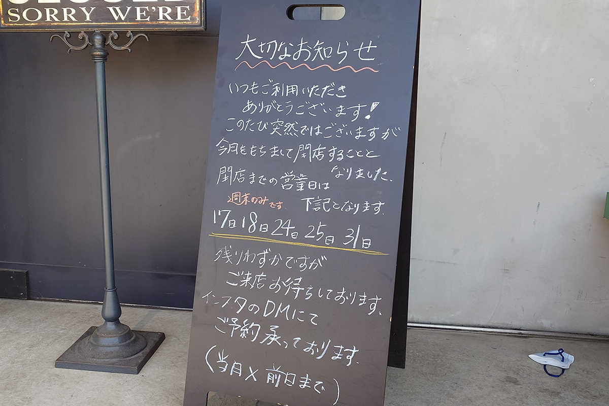 閉店までは週末(土日)のみの営業で、