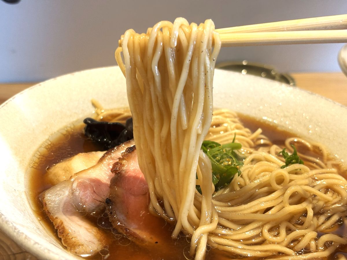 細めのストレート麺にスープがしっかりと絡んできます。