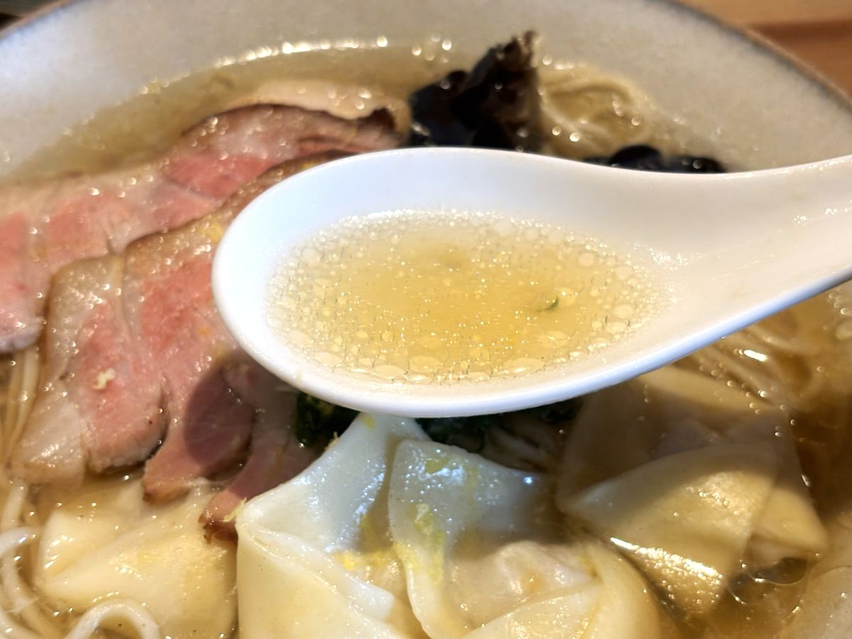塩ラーメンに見紛うほどの透明度。