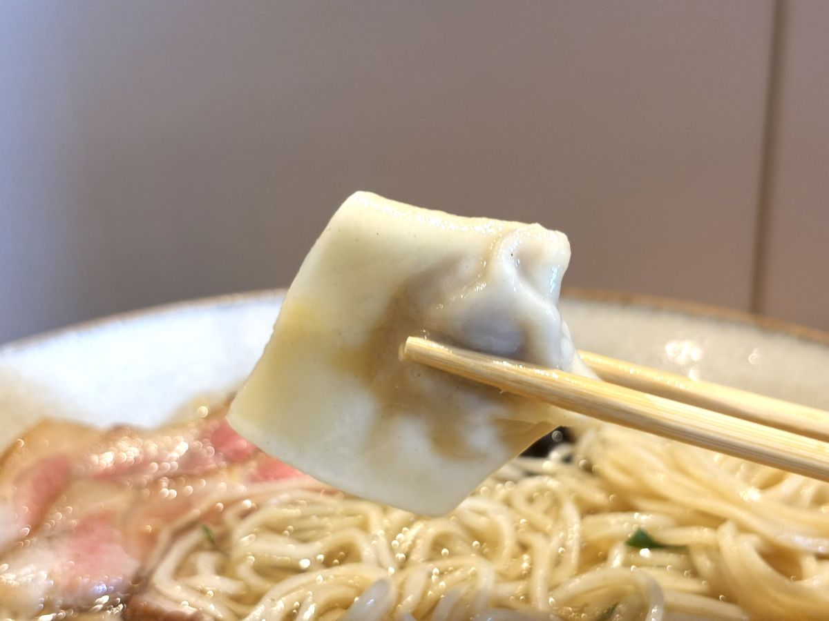 厚めの皮はツルッ・モチッのふたつの食感を両立しており、麺とはまた異なる形でのスープとの親和性が楽しめます。