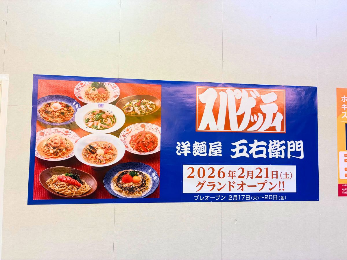 『洋麺屋 五右衛門』は2月17日(火)~20日(金)までがプレオープン。