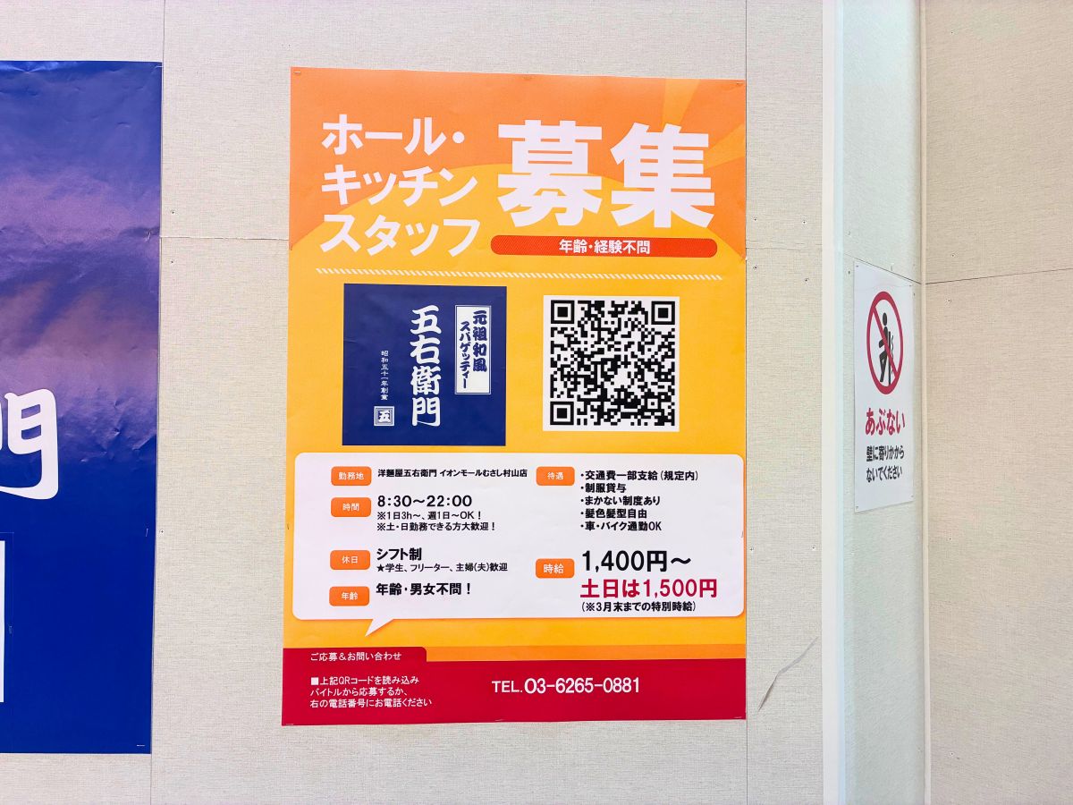 『洋麺屋 五右衛門』に求人情報がでてます↓