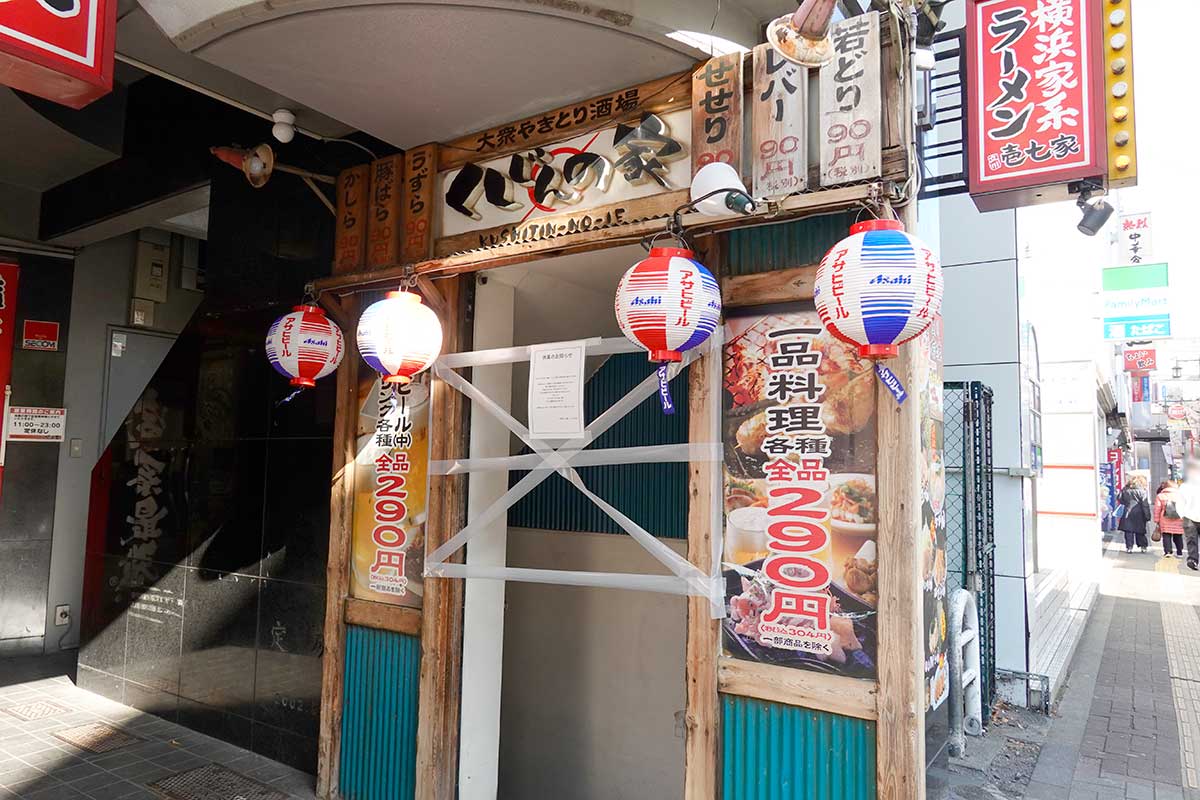 立川駅南口・諏訪通りぞいにある『大衆やきとり酒場 くしじんの家 立川店』が休業しています。