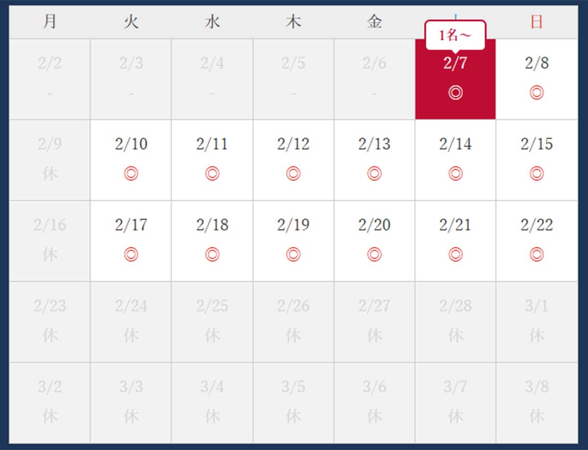 『海乃華 立川』公式サイトで予約状況を見てみると↓