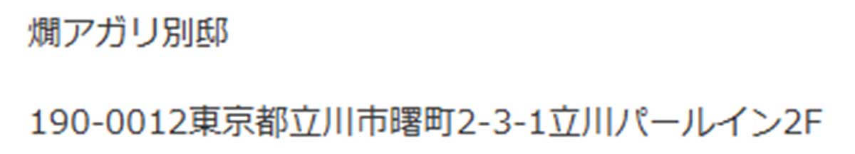 立川市曙町2-3-1立川パールイン2Fという住所が載っていました。