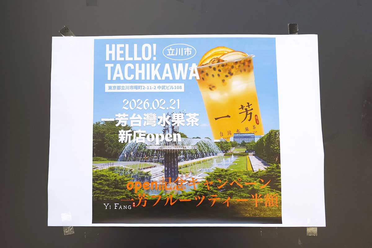 【開店】オープン記念でフルーツティー半額!?フロム中武1階の台湾フルーツティー専門店『一芳 台湾水果茶(イーファン タイワンフルーツティー)立川店』は明日2月21日(土)オープン