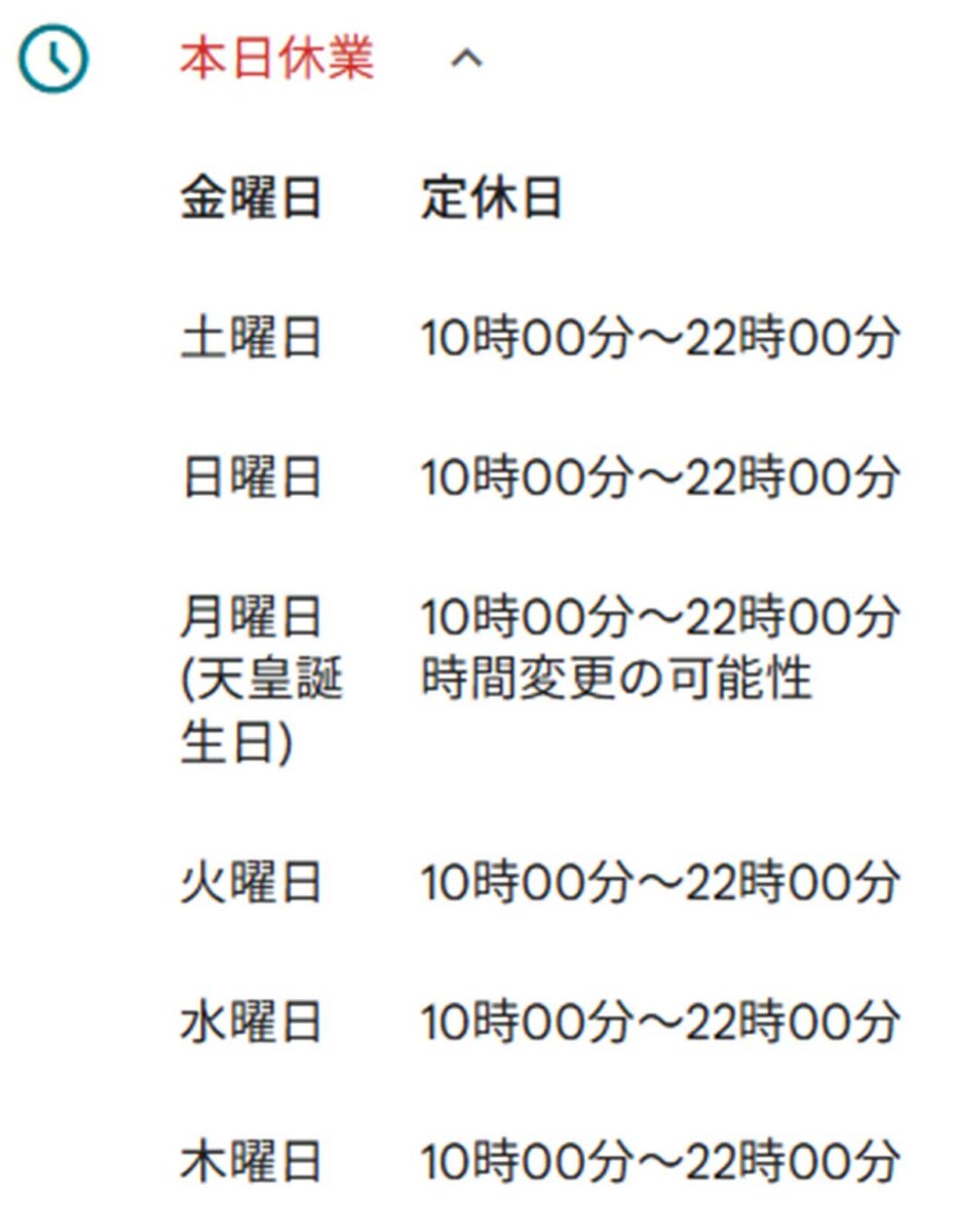 また、Googleマップ上で営業時間も確認できました↓