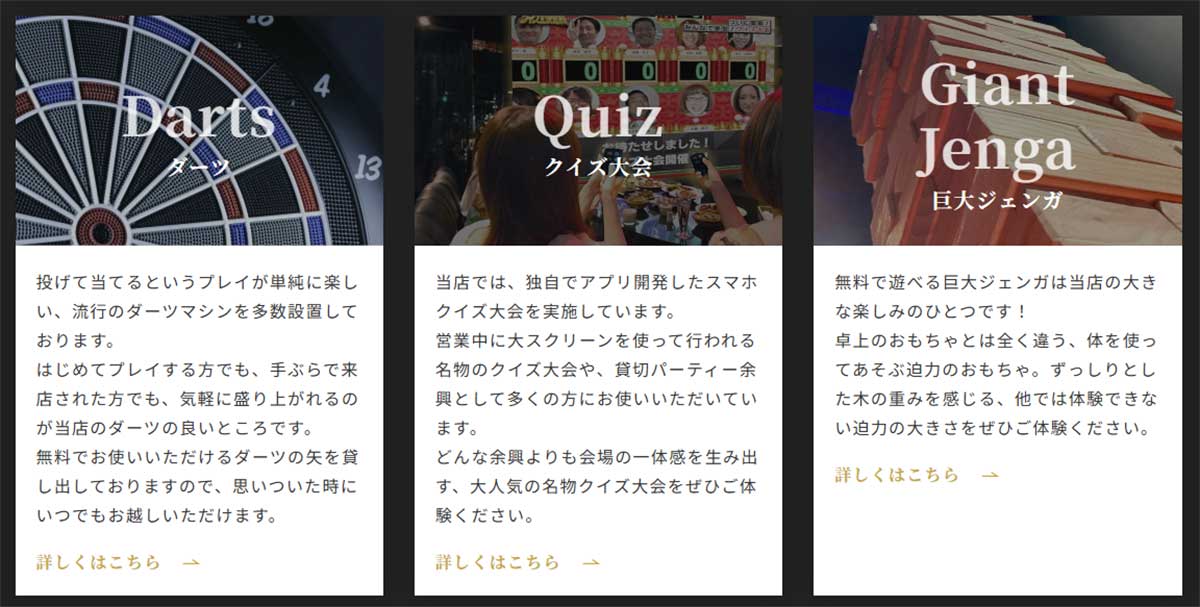 立川SOUTH店公式ページを見てみると、クイズ大会や巨大ジェンガでも遊べるようです↓
