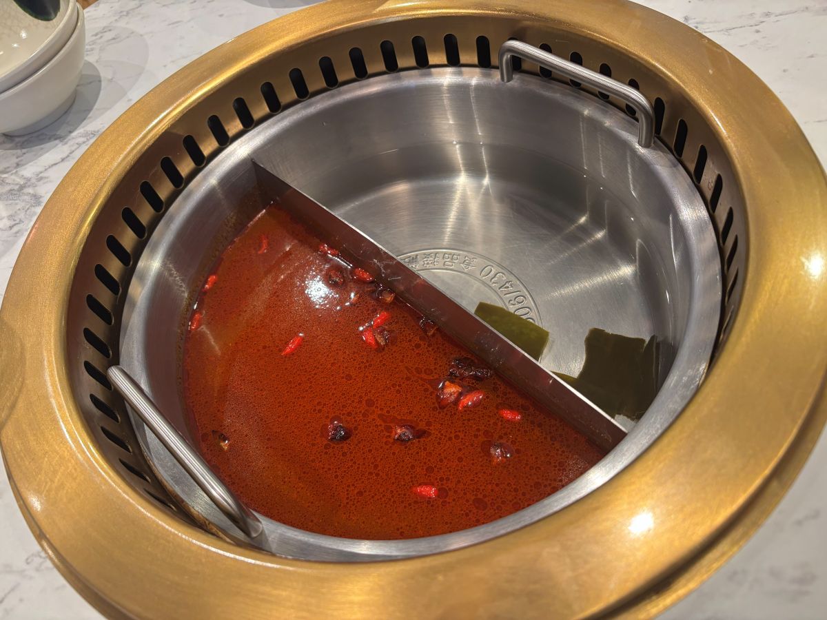 ひとつは昆布だし固定だったので、もうひとつは麻辣火鍋をチョイス。