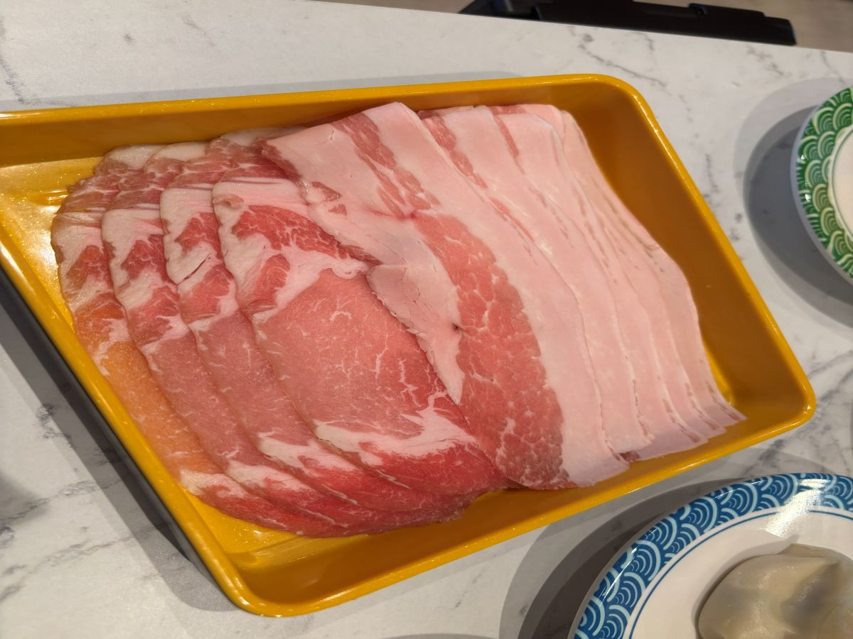 レーンの具材を選んでいる間にお肉やお鍋も届いちゃいました。