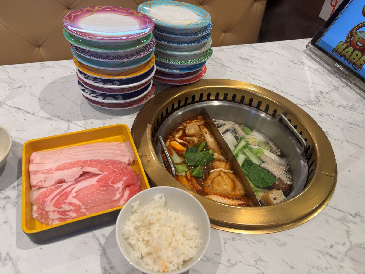 【開店】流れてくる鍋の具材は食べ放題!立川駅南口に開店した回転鍋のお店『GOGO NABE』でランチメニュー「国産盛り合わせ定食」食べてみた