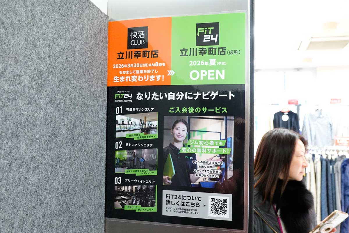 《閉店》お世話になりました。幸町の『快活クラブ 立川幸町店』が3月30日(月)朝8時で閉店して夏に24時間フィットネスジム『FiT24』になるみたい