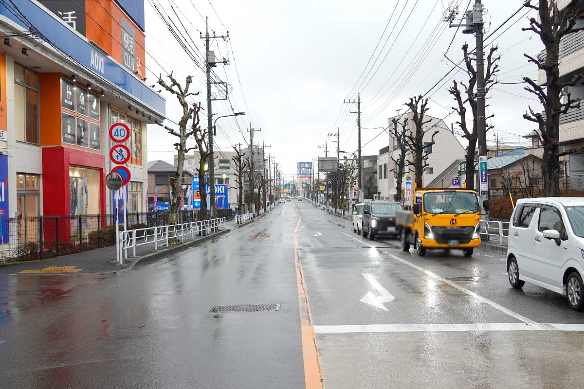 こちらに進むと立川通りとの交差点に出ます。その先には若葉ケヤキモール、エルロード商店会があります。