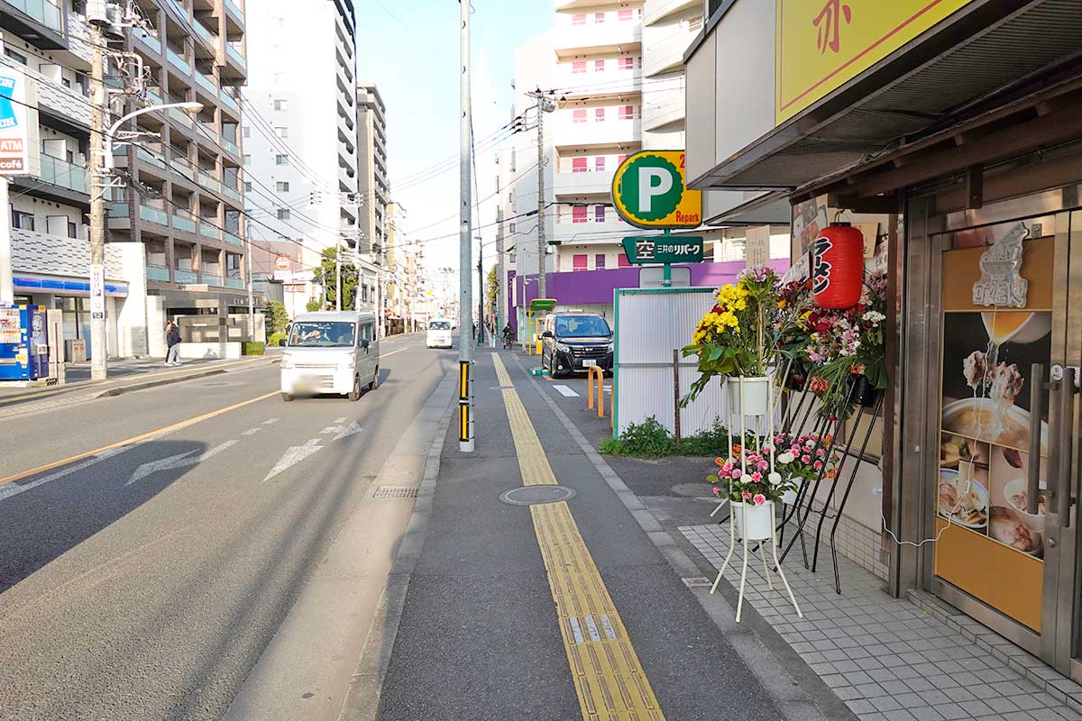 立川駅南口・ウインズ通りを東へひたすら進み、『ホテル日航 立川東京』を少し越えたあたり。