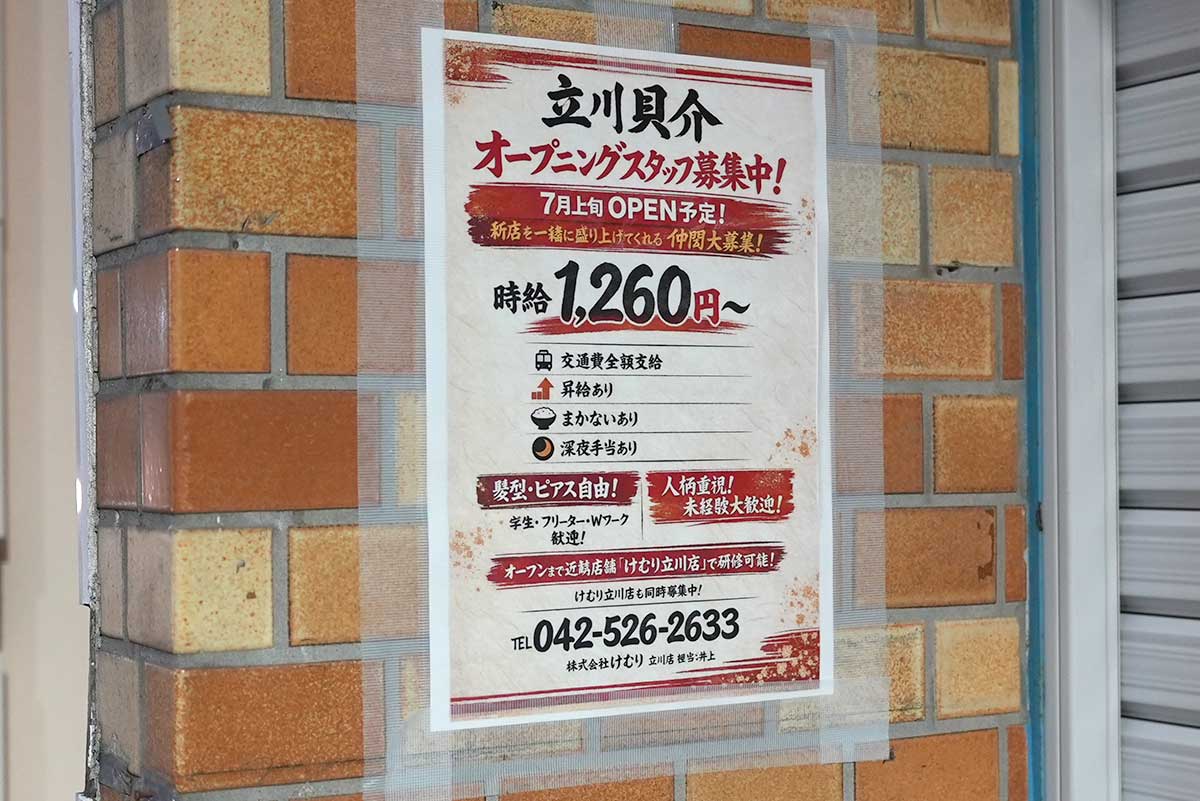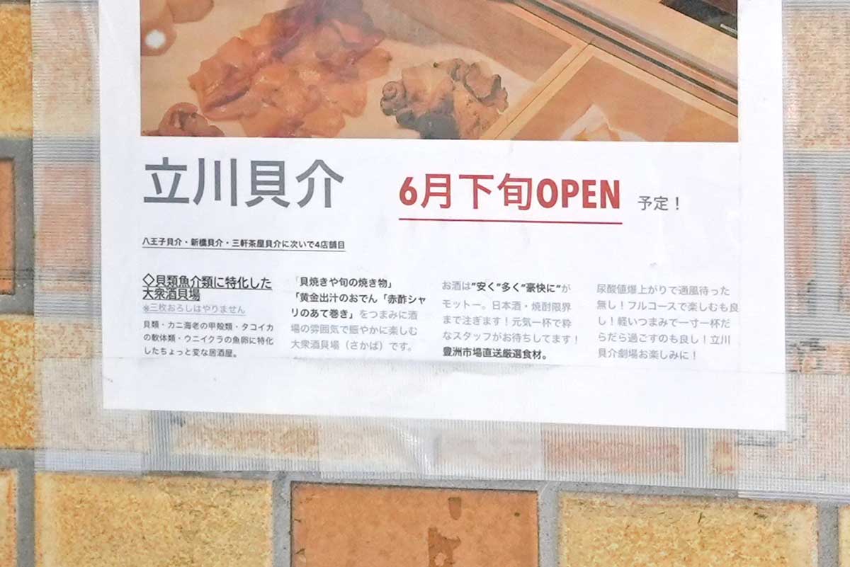 錦町・立川南通りぞいに貝専門店の居酒屋ができるようです。