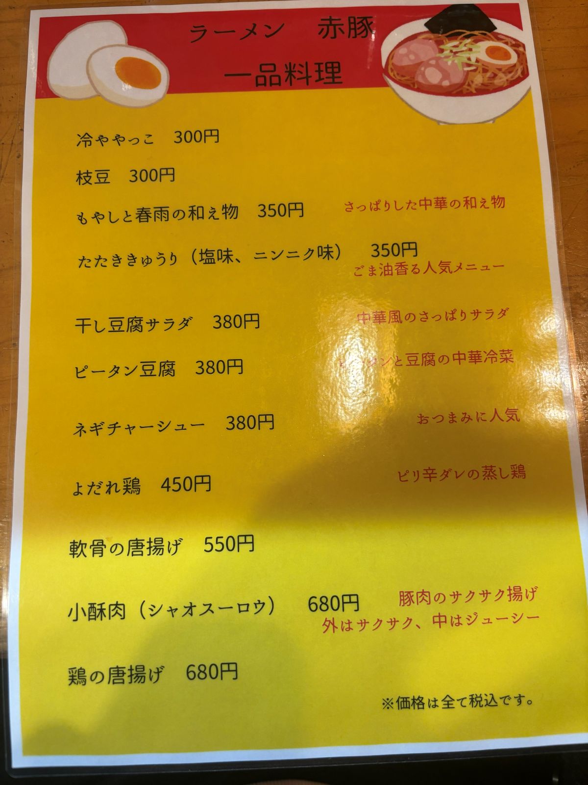 ラーメン屋らしいサイドメニューもいろいろ↓
