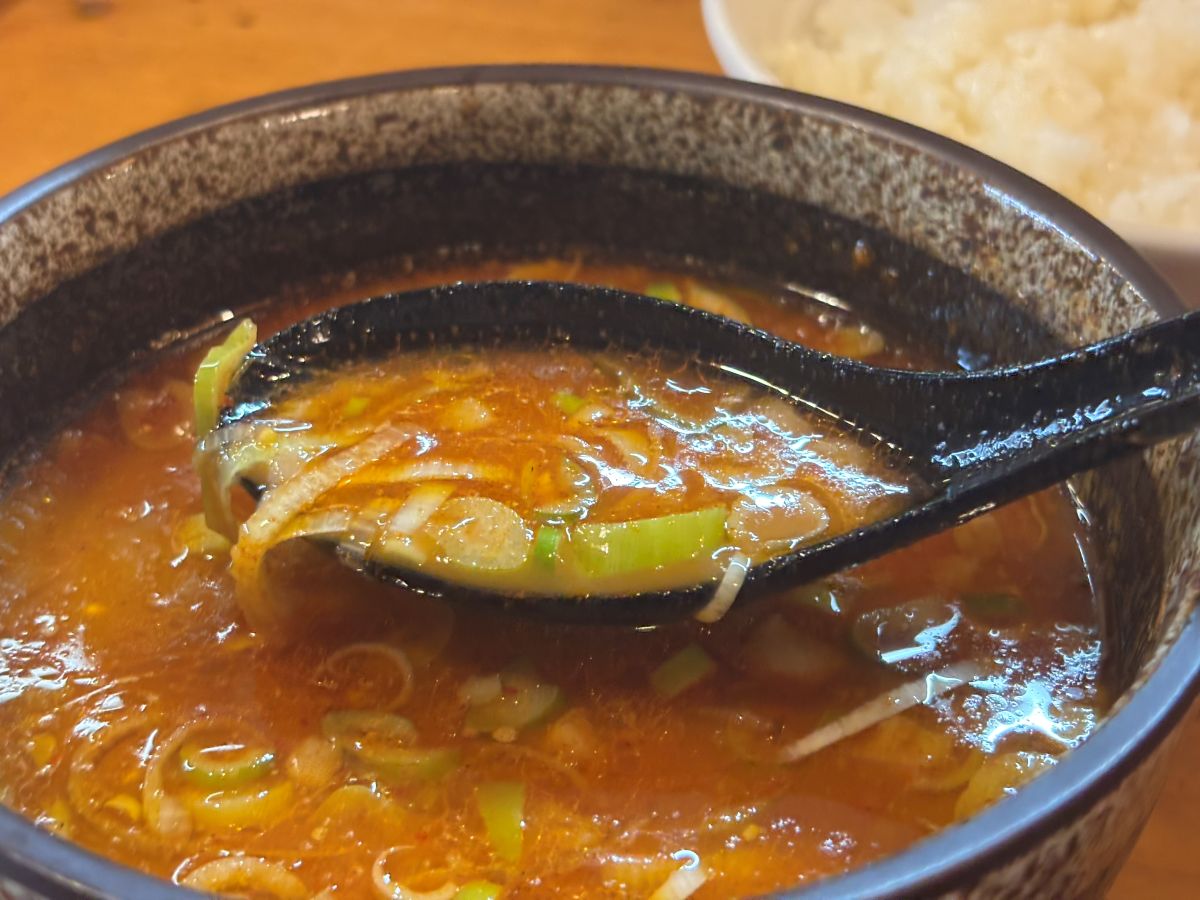 スープはネギたっぷり。香りを嗅ぐと、未体験の刺激が脳に届きました。