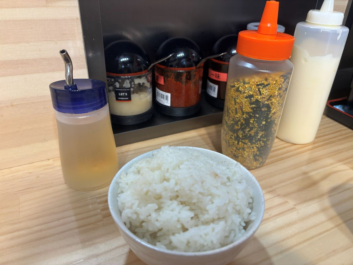 ラーメンを待つまで、ふりかけご飯で間を持たせることができます。