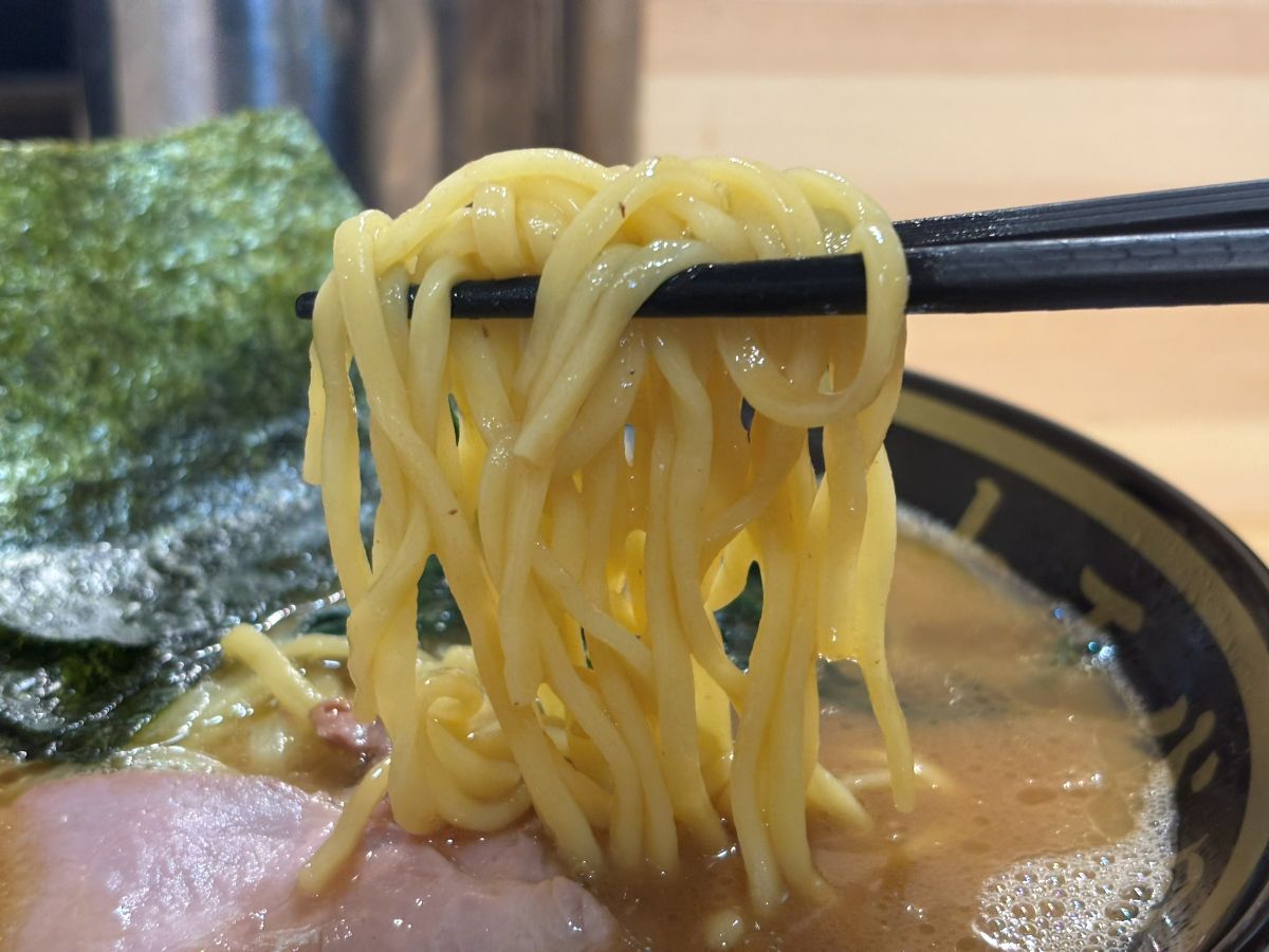 プリッとした麺にこってりスープが絡みます。