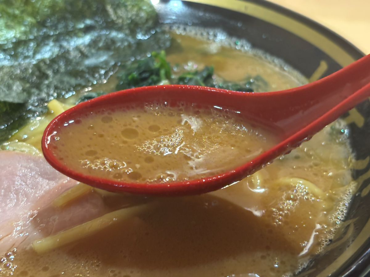 見るからに濃ゆいスープの色合い、重たく鈍く光る油の層。