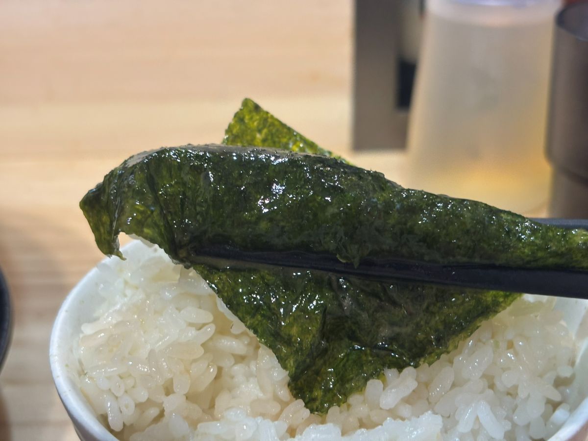 極め付けはたっぷりスープを含ませた海苔でごはんを包みます。