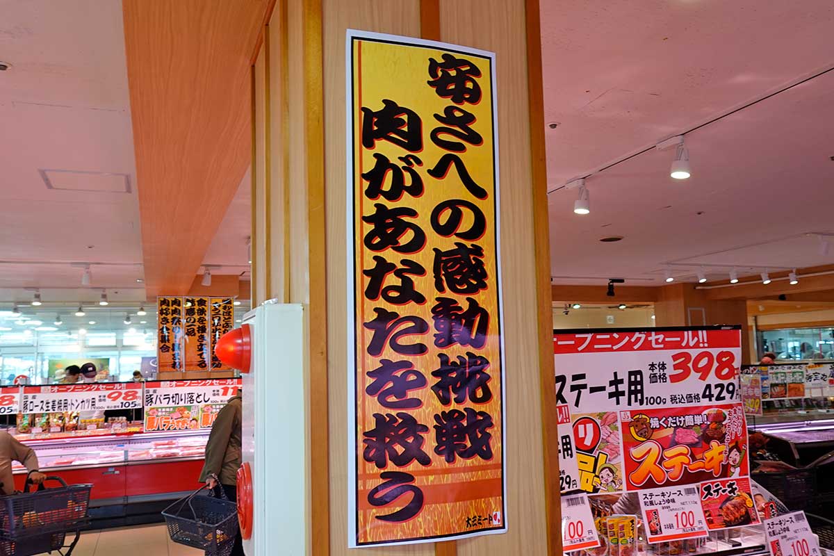 精肉コーナーには挑戦的なコピーが↓