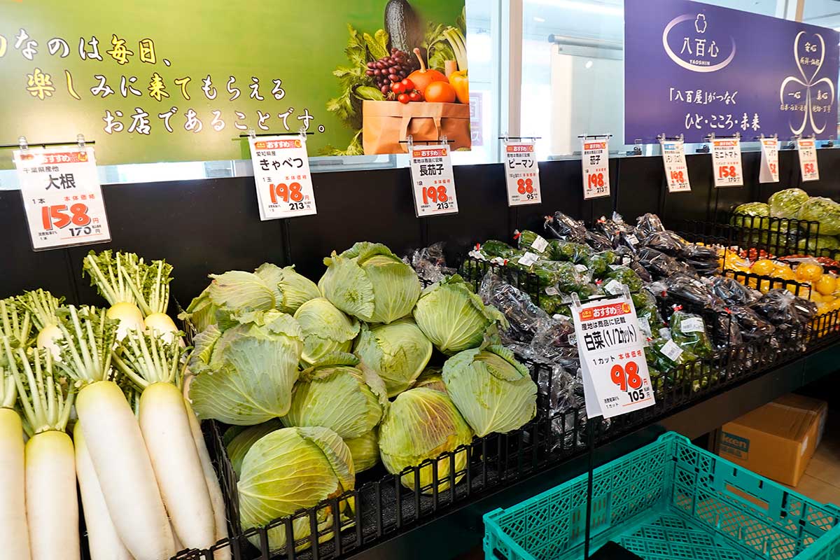 青果は『八百心(やおしん)』。他のダイレックスや業務スーパーに多く出店している青果店です。