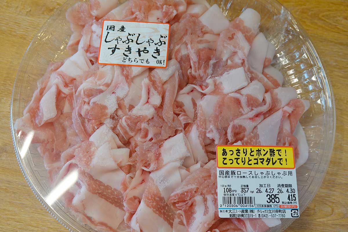 しゃぶしゃぶ用のロース肉もゲット。