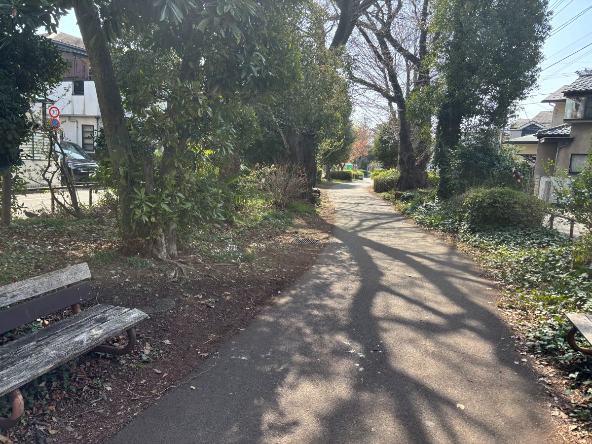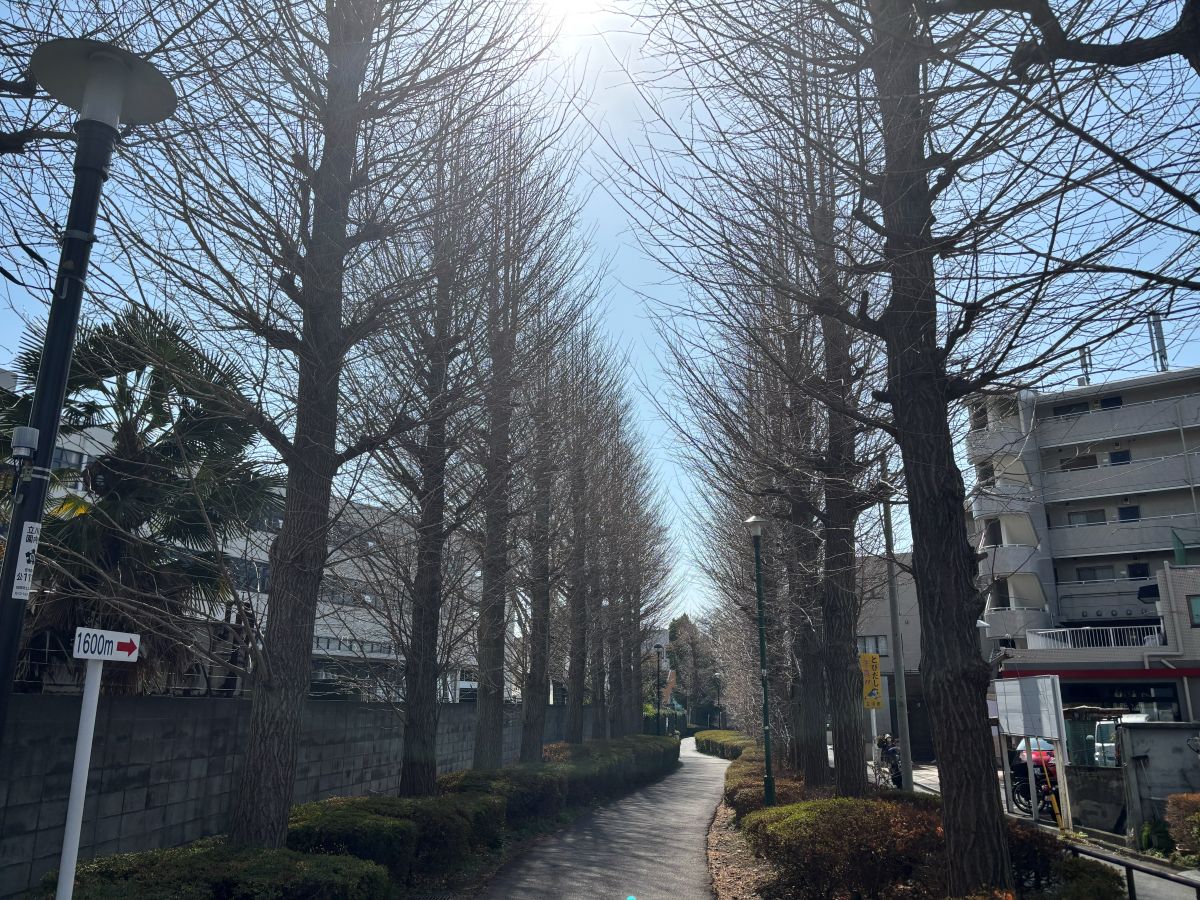 立川の芋窪街道、『ららぽーと立川立飛』あたりと国立駅あたりをググッと結ぶ遊歩道です。