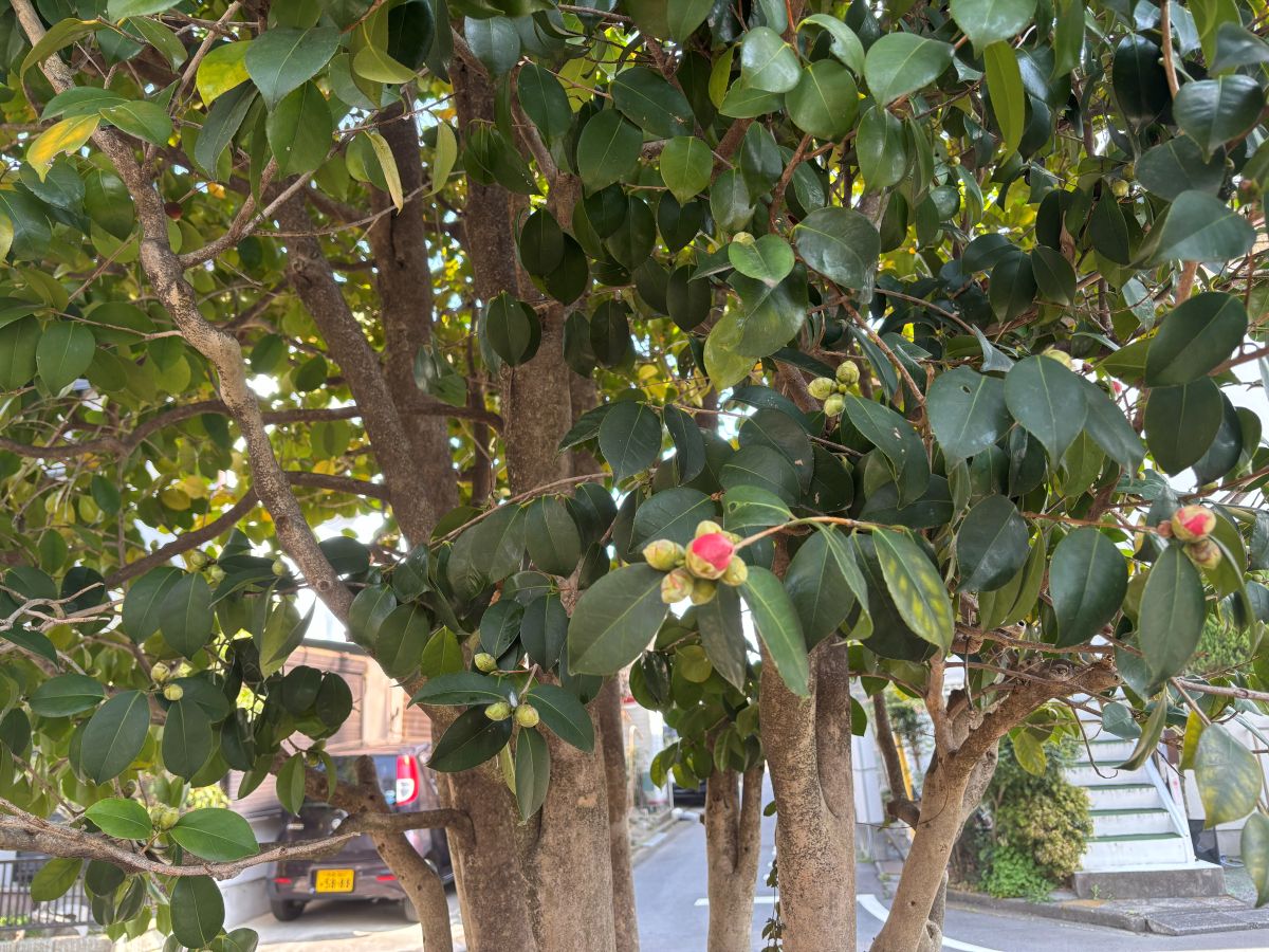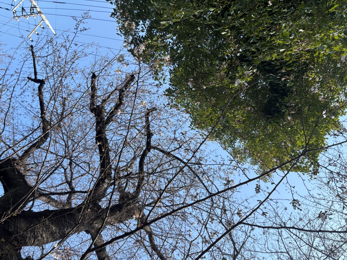 桜の木も開花にはまだ早い……、かと思ったら