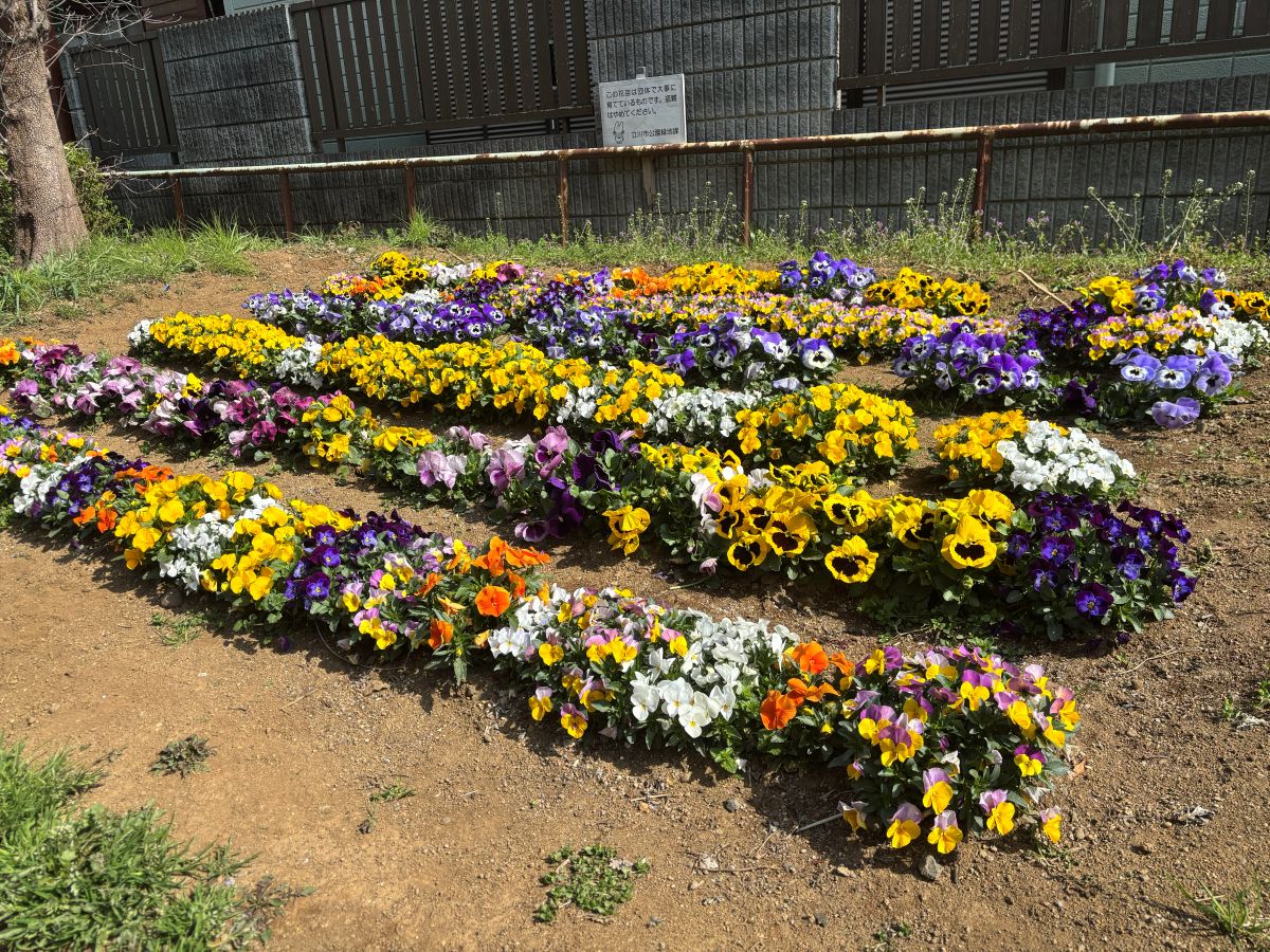 もう少し進むと、手入れされたパンジーの花畑に出会いました。