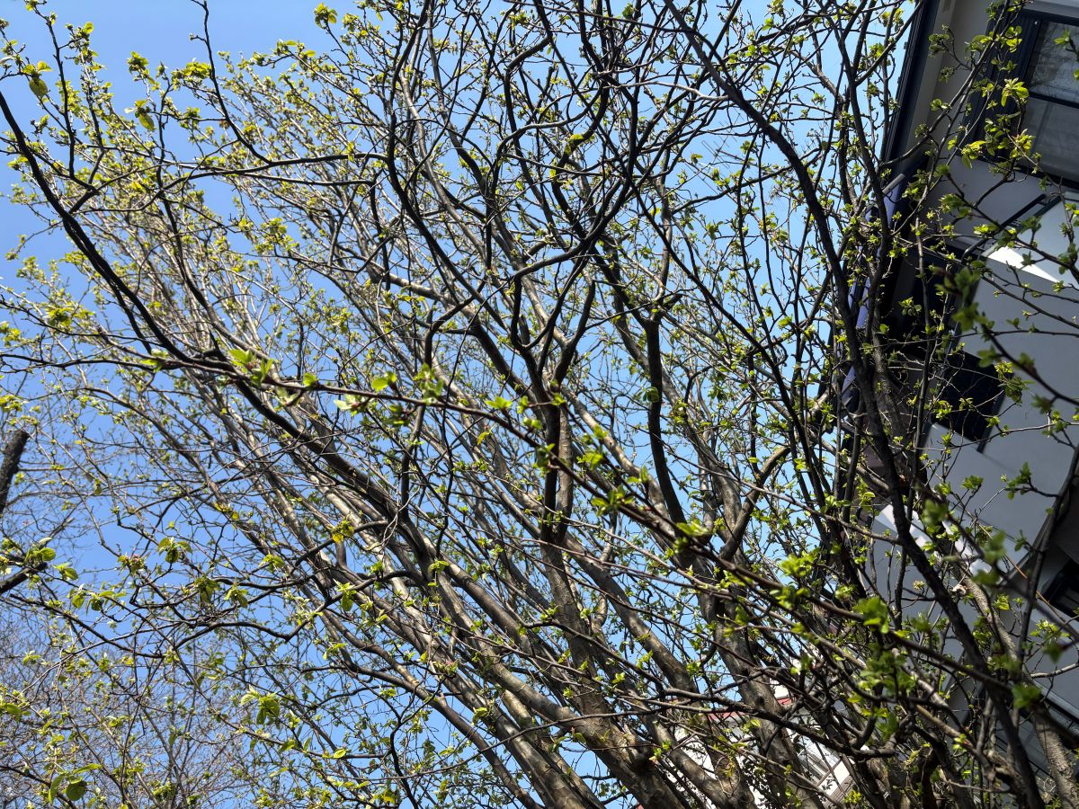 他の木には新芽が芽吹き始めており、