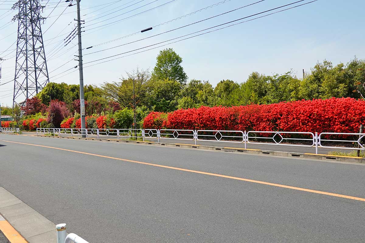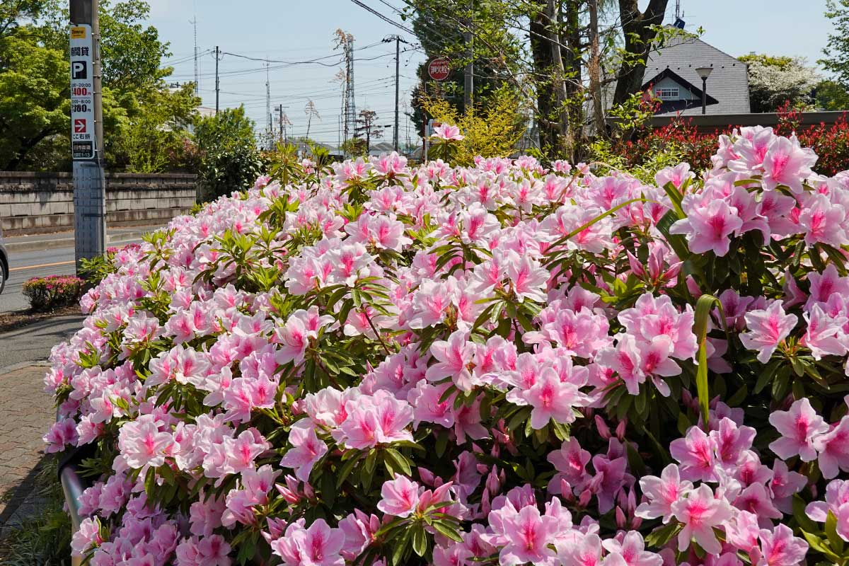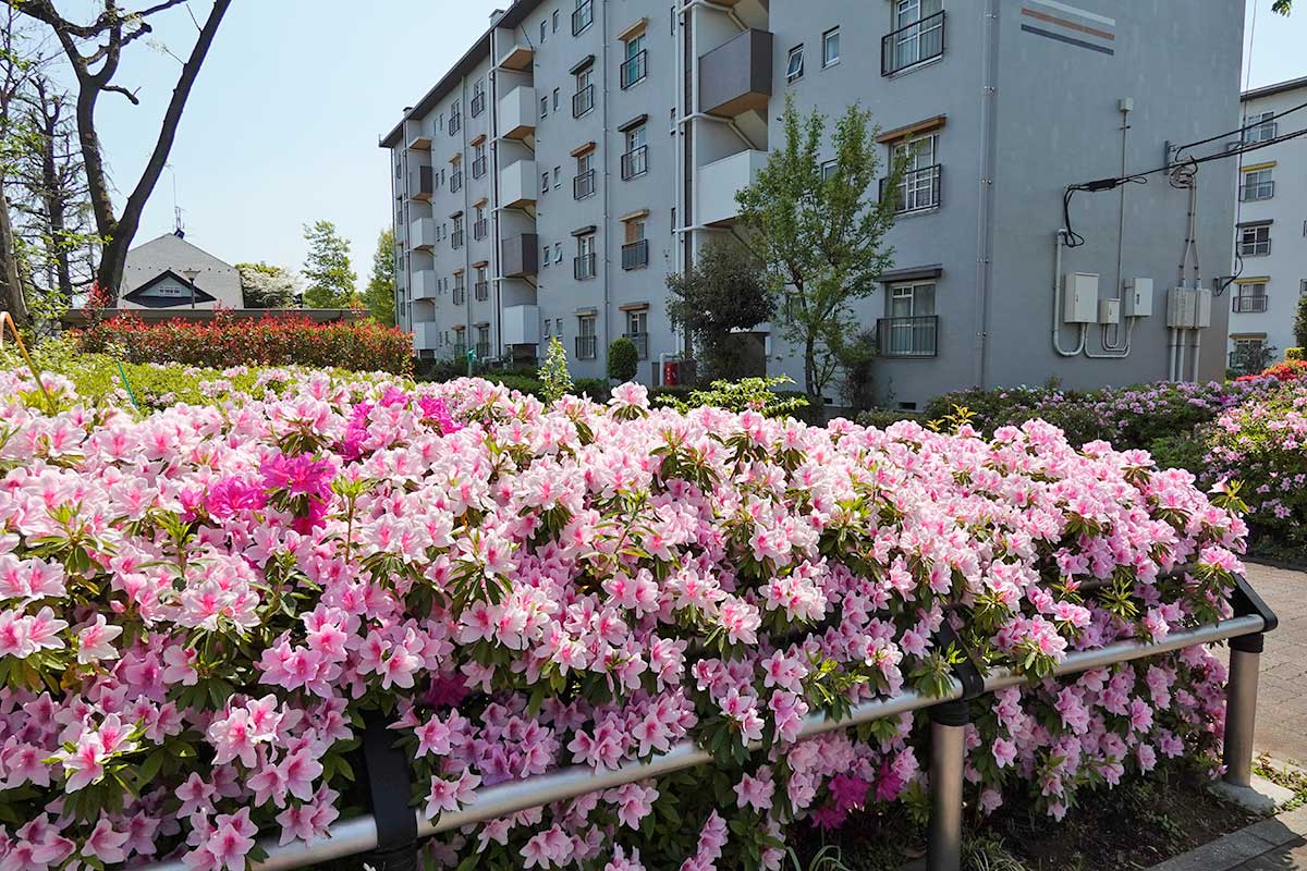 『ヤオコー 立川若葉町店』のお隣、けやき台団地に咲くツツジです。