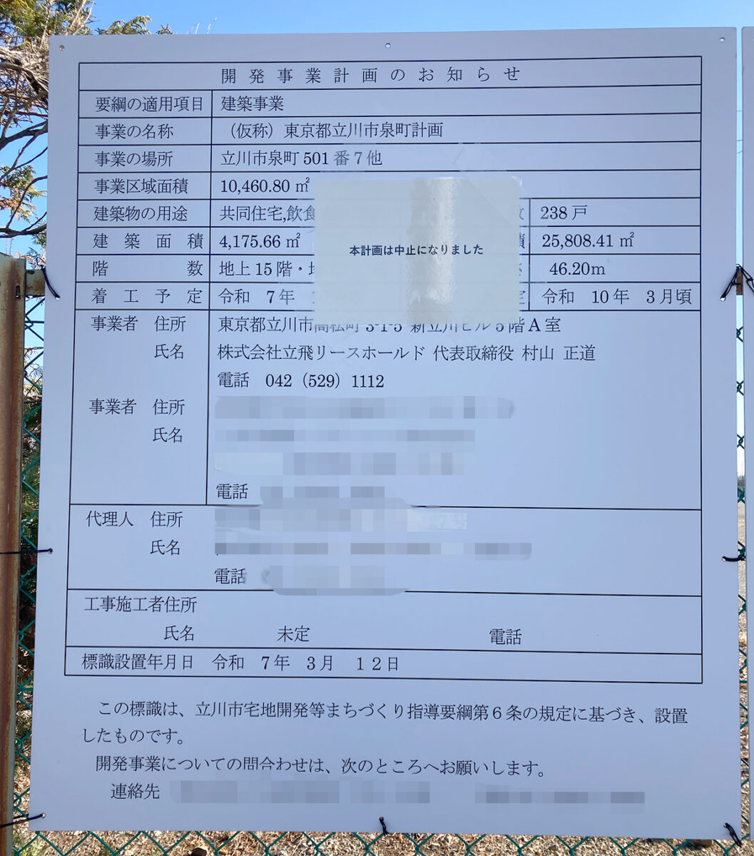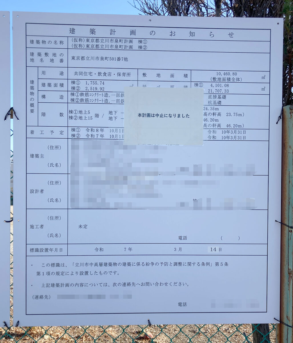「本計画は中止になりました」との貼り紙が。
