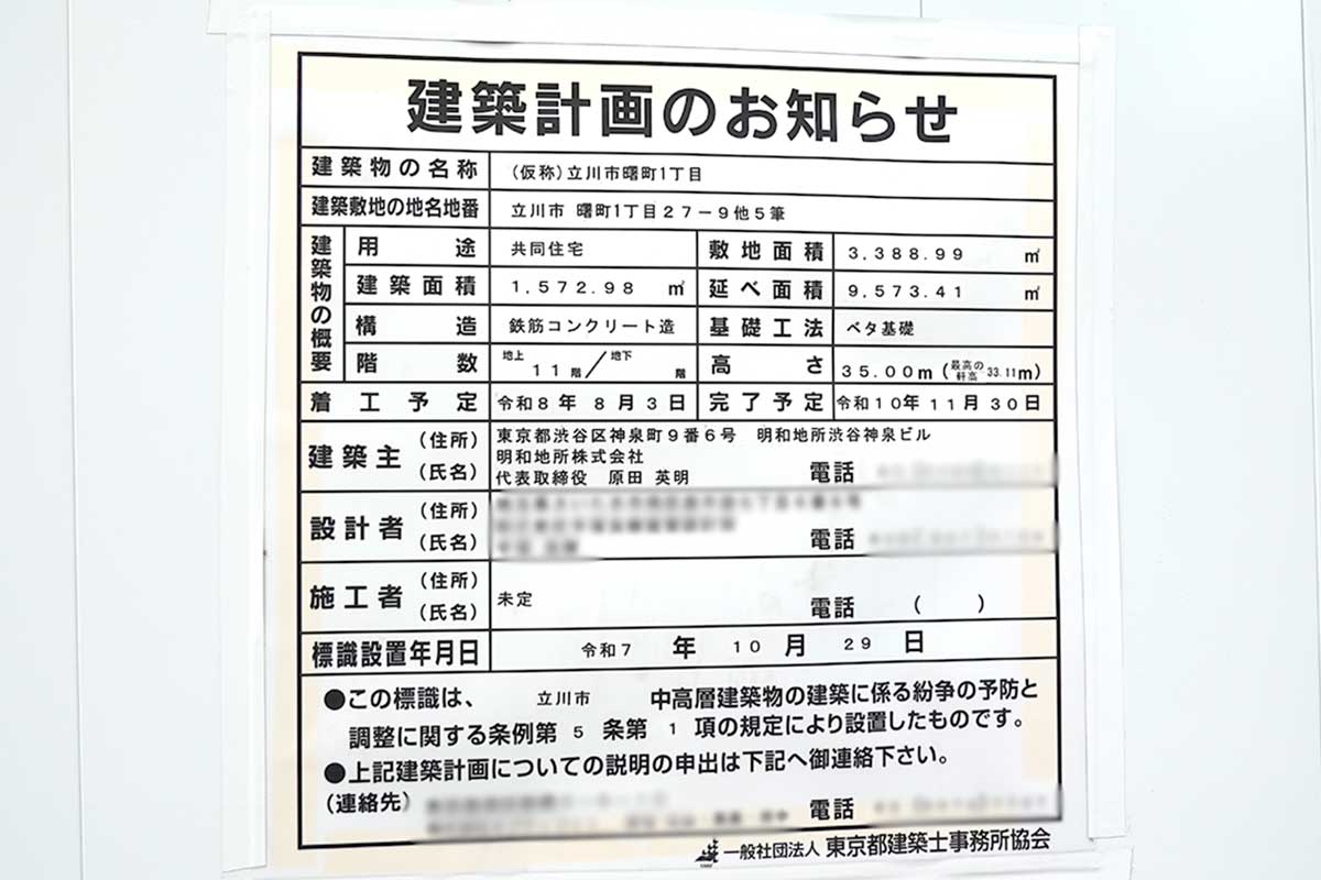 建築計画のお知らせによると、地上11階建てのマンションになるようです。