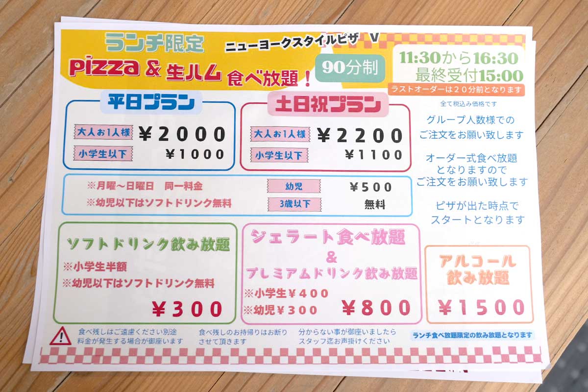 『立川 NEWYORK STYLE PIZZA V(ブイ)』のランチ食べ放題はこれまで【平日限定】【2名~】でしたが、